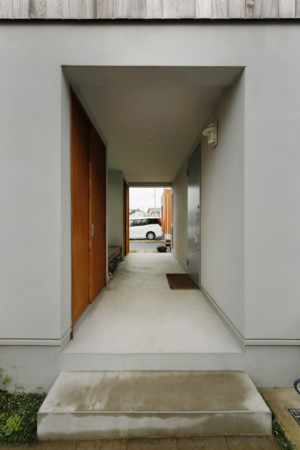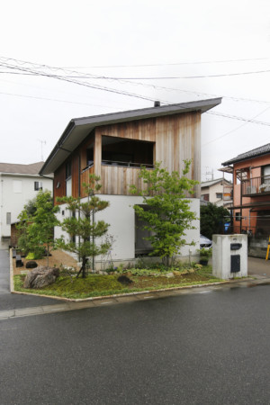 2階リビングの東側にインナーテラスを設け、川を眺める事が出来るようにしました。インナーテラスは春や秋に屋外で川からの風を感じくつろげる半屋外空間です。また、このインナーテラスは周囲の視線からリビング・ダイニングのプライバシーを守る緩衝帯となります。